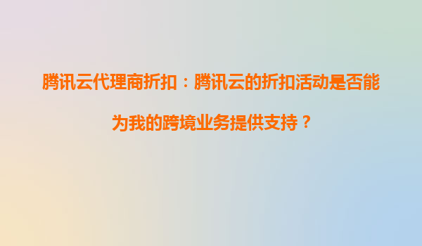 2025-09-16騰訊云代理商折扣:騰訊云的折扣活動(dòng)能否為跨境業(yè)務(wù)提供支持? 一、跨境電商的云端需求與挑戰(zhàn) 隨著全球電商市場(chǎng)的快速擴(kuò)張,跨境業(yè)務(wù)對(duì)云計(jì)算的需求日益增長(zhǎng)。企業(yè)需要...