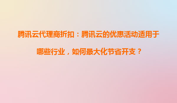 2025-09-16騰訊云代理商折扣:騰訊云的優(yōu)惠活動適用于哪些行業(yè),如何最大化節(jié)省開支? 在當前數(shù)字化轉(zhuǎn)型的大背景下,云計算已成為企業(yè)提升競爭力的重要工具。騰訊云作為國內(nèi)領(lǐng)先的云服務(wù)提供商,憑借其強大的技...