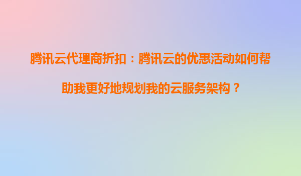 4008-020-360 騰訊云代理商折扣如何助力優(yōu)化您的云服務(wù)架構(gòu)規(guī)劃 引言:云服務(wù)架構(gòu)規(guī)劃的重要性 在數(shù)字化時(shí)代,高效的云服務(wù)架構(gòu)是企業(yè)實(shí)現(xiàn)業(yè)務(wù)敏捷性和成本可控的關(guān)鍵。騰訊云憑借其豐富的產(chǎn)品矩陣和代理商專屬折扣...
