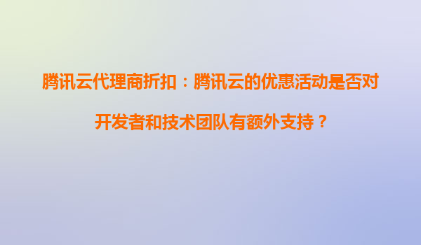 2025-09-16騰訊云代理商折扣解析:開發(fā)團(tuán)隊(duì)與技術(shù)社區(qū)的專屬支持 一、騰訊云代理商的核心優(yōu)勢(shì) 騰訊云通過(guò)代理商合作體系,為開發(fā)者及技術(shù)團(tuán)隊(duì)提供了更具彈性的資源采購(gòu)方式。代理商渠道不僅延續(xù)了官網(wǎng)新用戶首...