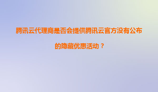 2025-11-04騰訊云代理商是否會提供騰訊云官方?jīng)]有公布的隱藏優(yōu)惠活動? 一、騰訊云代理商的隱藏優(yōu)惠是否存在? 許多用戶在購買騰訊云服務(wù)時,會好奇代理商是否提供官方未公開的隱藏優(yōu)惠。實際上,騰訊...