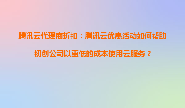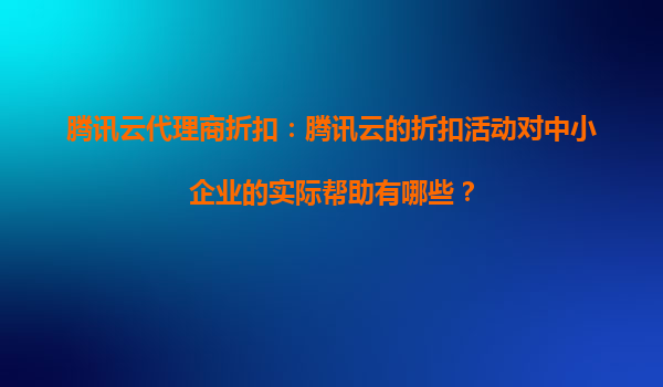 2025-09-02騰訊云代理商折扣:騰訊云的折扣活動(dòng)對(duì)中小企業(yè)的實(shí)際幫助 引言 在數(shù)字化轉(zhuǎn)型的浪潮中,云計(jì)算服務(wù)已成為企業(yè)提升競(jìng)爭(zhēng)力的關(guān)鍵工具。然而,對(duì)于中小企業(yè)而言,高昂的云...