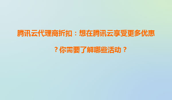 2025-09-02騰訊云代理商折扣:想在騰訊云享受更多優(yōu)惠?你需要了解哪些活動(dòng)? 1.騰訊云與代理商的關(guān)系 騰訊云作為國(guó)內(nèi)領(lǐng)先的云計(jì)算服務(wù)提供商,提供了包括云服務(wù)器、數(shù)據(jù)庫(kù)、存儲(chǔ)、CDN、大數(shù)...