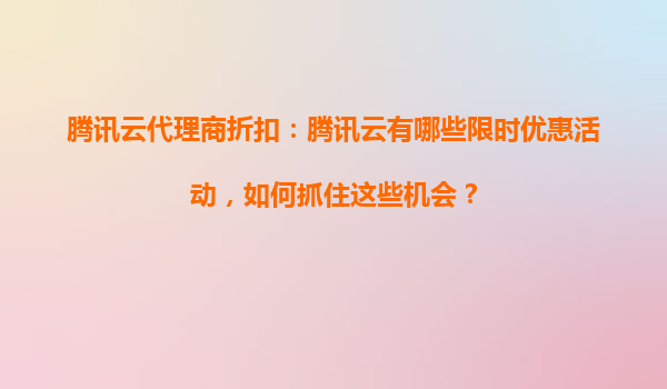 2025-09-02騰訊云代理商折扣:限時(shí)優(yōu)惠活動(dòng)與抓住機(jī)會(huì)的方法 引言 騰訊云作為國(guó)內(nèi)領(lǐng)先的云計(jì)算服務(wù)提供商,憑借強(qiáng)大的技術(shù)實(shí)力和豐富的產(chǎn)品矩陣,持續(xù)為企業(yè)和開發(fā)者提供高效、穩(wěn)定的云服務(wù)。與此同...