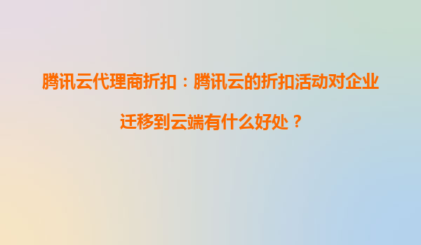 2025-09-02騰訊云代理商折扣:騰訊云的折扣活動(dòng)對(duì)企業(yè)遷移到云端有什么好處? 一、企業(yè)上云的需求與挑戰(zhàn) 隨著數(shù)字化轉(zhuǎn)型的加速,越來(lái)越多的企業(yè)選擇將業(yè)務(wù)遷移到云端。云...