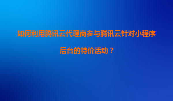 2025-11-04如何利用騰訊云代理商參與騰訊云針對小程序后臺(tái)的特價(jià)活動(dòng)? 一、騰訊云小程序后臺(tái)特價(jià)活動(dòng)概述 騰訊云作為國內(nèi)領(lǐng)先的云服務(wù)提供商,經(jīng)常針對不同場景推出專項(xiàng)特價(jià)活動(dòng)。針對小程序開發(fā)者,騰訊云會(huì)定期推...