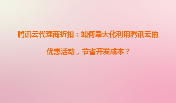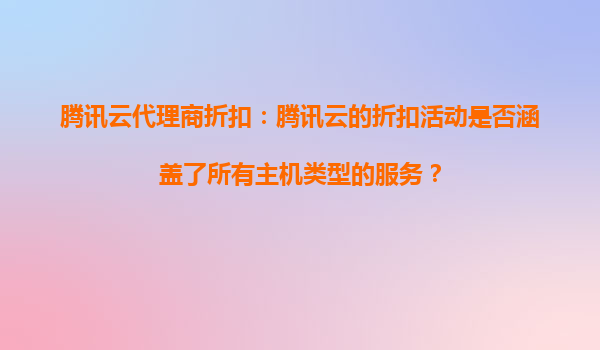 2025-08-30騰訊云代理商折扣:騰訊云的折扣活動是否涵蓋了所有主機類型的服務(wù)? 一、騰訊云代理商折扣概述 騰訊云作為國內(nèi)領(lǐng)先的云計算服務(wù)提供商,通過代理商渠道為用戶提供多樣化的折扣活動。代理商折扣通常涵蓋云...