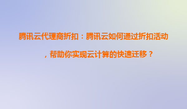 2025-08-30騰訊云代理商折扣:騰訊云如何通過折扣活動,助力企業(yè)實現(xiàn)云計算的快速遷移 一、云計算遷移的挑戰(zhàn)與機遇 隨著數(shù)字化轉(zhuǎn)型的加速,越來越多的企業(yè)將業(yè)務(wù)遷移至云...
