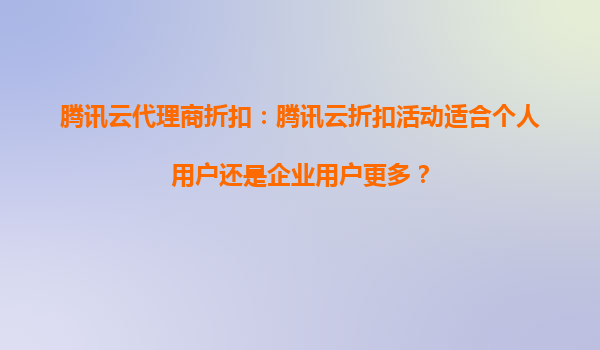2025-08-27騰訊云代理商折扣:騰訊云折扣活動(dòng)適合個(gè)人用戶還是企業(yè)用戶更多? 引言 隨著云計(jì)算技術(shù)的快速發(fā)展,越來(lái)越多的個(gè)人用戶和企業(yè)開始選擇云服務(wù)來(lái)滿足其計(jì)算、存...