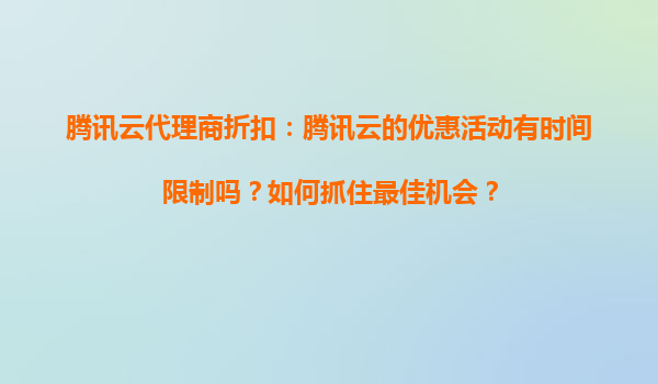 2025-08-27騰訊云代理商折扣:優(yōu)惠活動(dòng)時(shí)間與最佳機(jī)會(huì)把握 騰訊云代理商折扣活動(dòng)的時(shí)效性 騰訊云的優(yōu)惠活動(dòng)通常具有明確的時(shí)間限制,例如新用戶首購(gòu)特惠、季節(jié)性促銷(如雙11、618)或特定產(chǎn)品限時(shí)折扣等。代理商渠道...