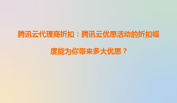2025-08-27騰訊云代理商折扣:騰訊云優(yōu)惠活動(dòng)的折扣幅度能為你帶來(lái)多大優(yōu)惠? 在當(dāng)今數(shù)字化時(shí)代,云計(jì)算已成為企業(yè)IT基礎(chǔ)設(shè)施的核心組成部分。作為國(guó)內(nèi)領(lǐng)先的云服務(wù)提供商,騰訊云憑借其強(qiáng)大的技術(shù)實(shí)力、豐富的產(chǎn)品線以...