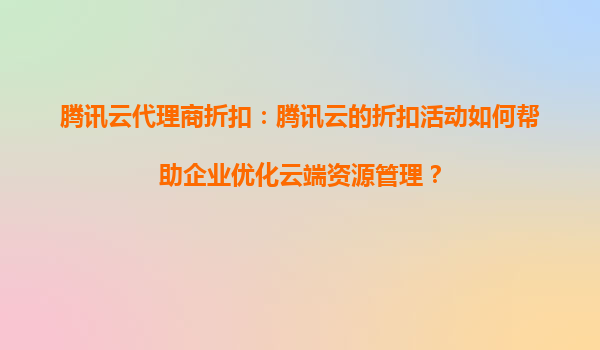 2025-08-27騰訊云代理商折扣:如何助力企業(yè)優(yōu)化云端資源管理? 引言 在數(shù)字化轉(zhuǎn)型的浪潮中,云計(jì)算已成為企業(yè)提升效率、降低成本的核心工具。騰訊云作為國(guó)內(nèi)領(lǐng)先的云服務(wù)...