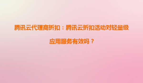 2025-08-25騰訊云代理商折扣:騰訊云折扣活動(dòng)對輕量級應(yīng)用服務(wù)有效嗎? 一、騰訊云代理商折扣概述 騰訊云作為國內(nèi)領(lǐng)先的云計(jì)算服務(wù)提供商,經(jīng)常通過代理商或官方渠道推出...