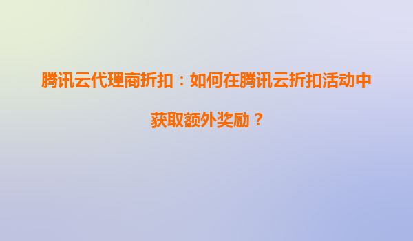 2025-08-25騰訊云代理商折扣:如何在騰訊云折扣活動(dòng)中獲取額外獎(jiǎng)勵(lì)? 一、騰訊云與代理商的雙重優(yōu)勢 騰訊云作為國內(nèi)領(lǐng)先的云計(jì)算服務(wù)提供商,憑借其穩(wěn)定、安全、高性能的云服務(wù),吸引了大量企業(yè)和個(gè)人用戶。而騰訊云...