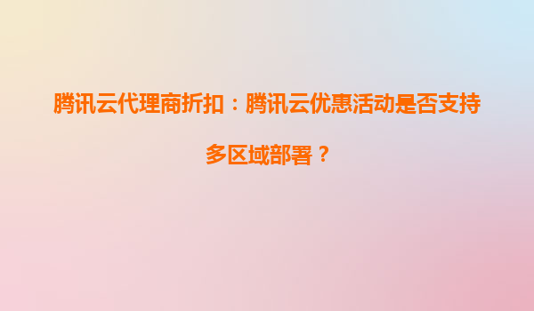 2025-08-23騰訊云代理商折扣:騰訊云優(yōu)惠活動是否支持多區(qū)域部署? 一、騰訊云多區(qū)域部署的核心優(yōu)勢 騰訊云作為全球領先的云計算服務商,其多區(qū)域部署能力是核心競爭優(yōu)勢之一。目前,騰訊云在全球范圍內(nèi)擁有超...