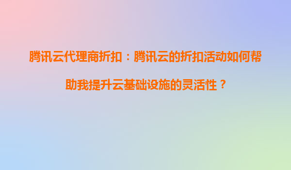 4008-020-360 騰訊云代理商折扣:騰訊云的折扣活動(dòng)如何幫助我提升云基礎(chǔ)設(shè)施的靈活性?一、騰訊云的核心優(yōu)勢(shì)與靈活性基礎(chǔ)騰訊云作為國(guó)內(nèi)領(lǐng)先的云計(jì)算服務(wù)商,其核心優(yōu)勢(shì)...
