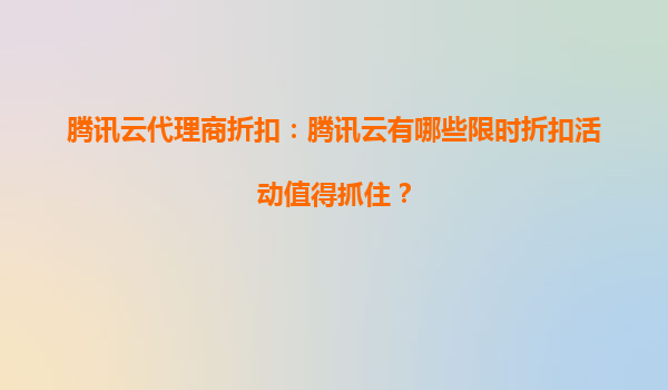 2025-08-21騰訊云代理商折扣:騰訊云的折扣活動(dòng)是否適用于所有云服務(wù)產(chǎn)品? 一、騰訊云代理商折扣的覆蓋范圍 騰訊云作為國內(nèi)領(lǐng)先的云計(jì)算服務(wù)提供商,經(jīng)常通過代理商渠道推出各類折扣活動(dòng)以吸引客戶。然而,并非所...