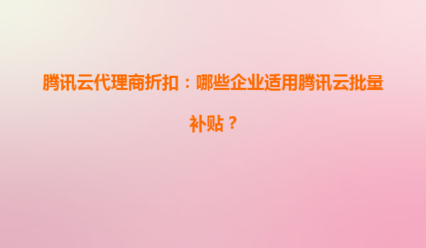 2025-08-20騰訊云代理商折扣:哪些企業(yè)適用騰訊云批量補(bǔ)貼? 一、騰訊云的優(yōu)勢(shì)概覽 騰訊云作為國(guó)內(nèi)領(lǐng)先的云計(jì)算服務(wù)提供商,憑借其強(qiáng)大的技術(shù)實(shí)力和豐富的行業(yè)經(jīng)驗(yàn),為企業(yè)用戶提供了穩(wěn)定、高效、安全的云服務(wù)解決方...
