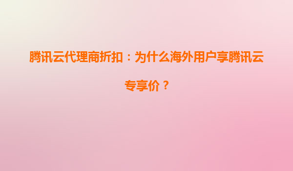 2025-08-17騰訊云代理商折扣:為什么海外用戶享騰訊云專享價? 一、騰訊云的市場布局與海外戰(zhàn)略 隨著全球云計算市場競爭加劇,騰訊云作為中國領先的云服務提供商,近年來加速了全球化布局。目前,...