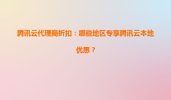 2025-08-16騰訊云代理商折扣:哪些地區(qū)專享騰訊云本地優(yōu)惠? 一、騰訊云的優(yōu)勢與代理商合作價值 騰訊云作為中國領(lǐng)先的云計算服務(wù)提供商,憑借其強(qiáng)大的技術(shù)實力、豐富的產(chǎn)品矩陣及全球化的數(shù)據(jù)中心布局,為企...