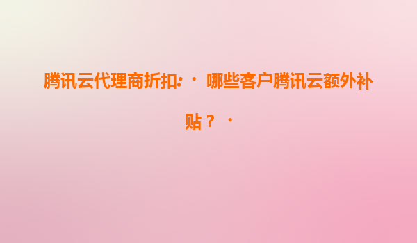 2025-07-18騰訊云代理商折扣:哪些客戶可享受額外補(bǔ)貼? 作為國內(nèi)領(lǐng)先的云計(jì)算服務(wù)提供商,騰訊云憑借其強(qiáng)大的技術(shù)實(shí)力和豐富的產(chǎn)品矩陣,已成為眾多企業(yè)數(shù)字化轉(zhuǎn)型的首選。通過騰訊云代理商體系,客戶不僅能獲得專業(yè)的技...