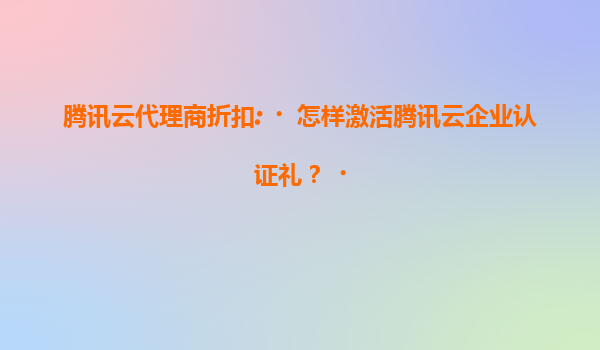 2025-07-16騰訊云代理商折扣:如何激活騰訊云企業(yè)認(rèn)證禮? 一、騰訊云企業(yè)認(rèn)證禮簡介 騰訊云企業(yè)認(rèn)證禮是騰訊云面向企業(yè)用戶推出的專屬福利,包含代金券、產(chǎn)品折扣、技術(shù)支持等多項權(quán)益。通過企業(yè)...