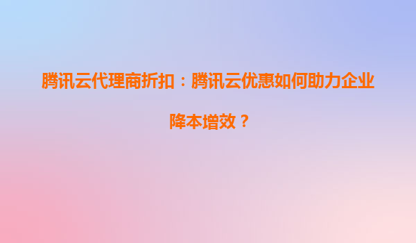 2025-06-29騰訊云代理商折扣:為什么關注產品升級福利? 引言:代理商生態中的升級價值 在云計算市場競爭白熱化的今天,騰訊云通過"代理商折扣"體系構建強大的渠道生態。...
