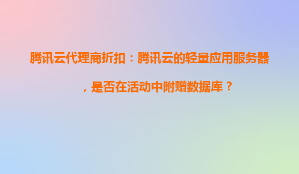 2025-10-26騰訊云代理商折扣:輕量應用服務器活動是否附贈數(shù)據(jù)庫? 一、騰訊云輕量應用服務器簡介 騰訊云輕量應用服務器(Lighthouse)是一款面向中小企業(yè)和開發(fā)者的輕量級云計算產(chǎn)品,提供高性價...