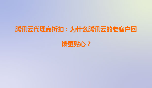 2025-06-23騰訊云代理商折扣:為什么騰訊云的老客戶回饋更貼心? 一、云計算市場的新競爭法則 在云計算服務同質化日益嚴重的今天,價格策略和客戶關懷成為破局關鍵。騰訊云通過創新...