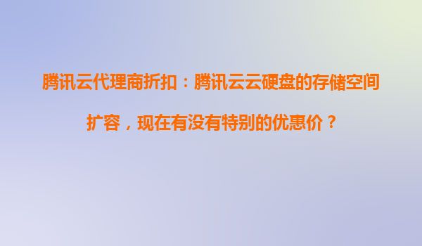 2025-10-23騰訊云代理商折扣:騰訊云云硬盤擴(kuò)容優(yōu)惠全解析 一、騰訊云云硬盤擴(kuò)容的核心價(jià)值 騰訊云云硬盤(CloudBlockStorage,CBS)作為彈性可擴(kuò)展的高性能存儲服務(wù),支持隨時(shí)擴(kuò)容且無需停機(jī),尤其適合業(yè)務(wù)快速增...