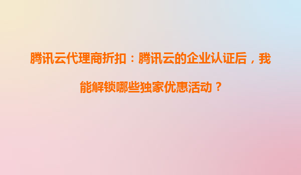 2025-10-24騰訊云代理商折扣:企業(yè)認(rèn)證后的專屬優(yōu)惠全解析 騰訊云作為國內(nèi)領(lǐng)先的云計(jì)算服務(wù)提供商,憑借強(qiáng)大的技術(shù)實(shí)力和豐富的產(chǎn)品矩陣,持續(xù)為企業(yè)和開發(fā)者提供高效、穩(wěn)定的云服務(wù)。通過騰訊云代理商合作并完成企業(yè)認(rèn)證...