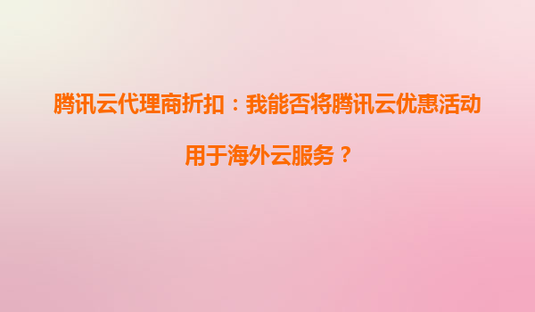 2025-10-21騰訊云代理商折扣:能否將騰訊云優(yōu)惠活動(dòng)用于海外云服務(wù)? 一、騰訊云海外服務(wù)與優(yōu)惠活動(dòng)的兼容性 騰訊云作為全球領(lǐng)先的云計(jì)算服務(wù)商,業(yè)務(wù)覆蓋全球五大洲,提供包括香港、新加坡、硅谷、法蘭克福等在內(nèi)的...