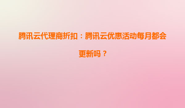 2025-10-17騰訊云代理商折扣:騰訊云優(yōu)惠活動每月都會更新嗎? 騰訊云優(yōu)惠活動的更新頻率 騰訊云作為國內(nèi)領(lǐng)先的云計算服務(wù)商,其優(yōu)惠活動的更新頻率一直是用戶關(guān)注的焦點...