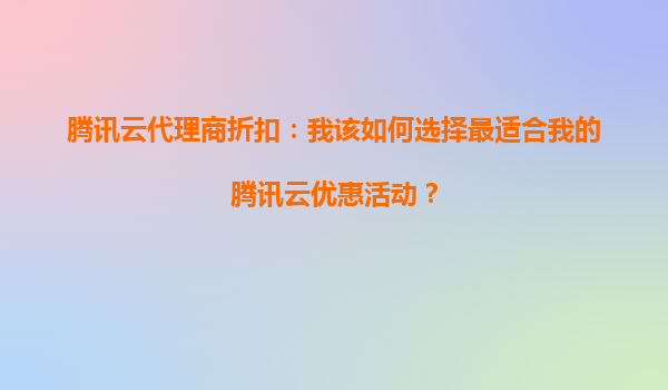 4008-020-360 騰訊云代理商折扣:新用戶注冊時有哪些騰訊云優(yōu)惠活動? 一、騰訊云新用戶專屬優(yōu)惠活動 騰訊云為吸引新用戶,常常推出具有吸引力的優(yōu)惠活動,以下是一些常見的優(yōu)惠: 新...