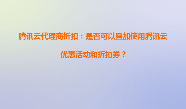 2025-10-17騰訊云代理商折扣:是否可以疊加使用騰訊云優(yōu)惠活動和折扣券? 在企業(yè)和個人用戶選擇云服務(wù)時,成本始終是一個重要的考量因素。為了降低上云成本,騰訊云及其代理商提供了多種優(yōu)惠活動和折扣券。然而,許多...