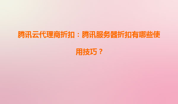 2025-04-05騰訊云代理商折扣:如何快速上手騰訊服務(wù)器折扣? 一、騰訊云的核心優(yōu)勢(shì)解析 要理解騰訊云代理商的價(jià)值,首先需要了解騰訊云的六大核心優(yōu)勢(shì): 全球基礎(chǔ)設(shè)施布局:覆蓋27個(gè)地理區(qū)域,部署5...