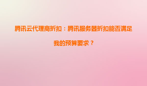 2025-04-05騰訊云代理商折扣:騰訊服務(wù)器折扣能否幫我提升競(jìng)爭(zhēng)力? 在云計(jì)算市場(chǎng)競(jìng)爭(zhēng)日益激烈的背景下,企業(yè)選擇云服務(wù)時(shí)不僅關(guān)注技術(shù)能力,更注重成本效益。騰訊云憑借其技術(shù)實(shí)力和靈活的代理商折扣政策,成...