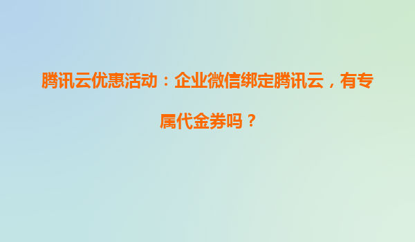 2025-04-03騰訊云優(yōu)惠活動:企業(yè)微信綁定騰訊云,解鎖專屬代金券與多重優(yōu)勢 一、企業(yè)微信綁定騰訊云,專屬代金券福利直達 騰訊云為助力企業(yè)數(shù)字化轉(zhuǎn)型,推出重磅優(yōu)惠活動:企業(yè)用戶通過綁定企業(yè)微信與騰...