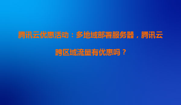 2025-04-03騰訊云多地域部署服務器優(yōu)惠活動解析:跨區(qū)域流量優(yōu)惠政策詳解 一、騰訊云多地域部署的核心優(yōu)勢 在數(shù)字化轉(zhuǎn)型加速的今天,騰訊云通過全球化基礎(chǔ)設(shè)施布局為開發(fā)者提供高效穩(wěn)定的云服務,其多地...