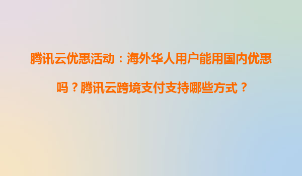 2025-04-03騰訊云優(yōu)惠活動詳解:海外華人用戶專享指南與跨境支付方式全解析 一、騰訊云海外華人用戶能否參與國內(nèi)優(yōu)惠活動? 騰訊云為全球用戶提供普惠性云計算服務,針對海外華人用戶推出專項政策: ...