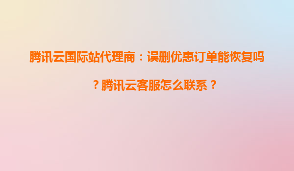 2025-04-02騰訊云國(guó)際站代理商:誤刪優(yōu)惠訂單恢復(fù)與客服聯(lián)系指南 誤刪優(yōu)惠訂單能否恢復(fù)? 在使用騰訊云國(guó)際站時(shí),用戶或代理商偶爾可能因操作失誤刪除優(yōu)惠訂單。針對(duì)這一問(wèn)題,騰訊...