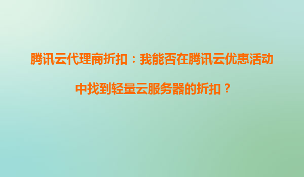 2025-10-14騰訊云代理商折扣:我能否在騰訊云優(yōu)惠活動中找到輕量云服務器的折扣? 引言 隨著云計算技術的快速發(fā)展,越來越多的企業(yè)和個人開發(fā)者開始選擇云服務來部署應用或存儲數(shù)據(jù)。騰訊云作為國內領先的云服務提供...