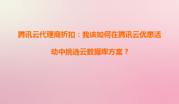 2025-10-11騰訊云代理商折扣:我該如何在騰訊云優(yōu)惠活動中挑選云數(shù)據(jù)庫方案? 一、騰訊云的優(yōu)勢與代理商折扣的價值 騰訊云作為國內領先的云計算服務提供商,憑借其強大的技術實力、穩(wěn)定的服務性能和豐富的產品生態(tài),...