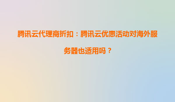 2025-10-10騰訊云代理商折扣:騰訊云優(yōu)惠活動對海外服務器也適用嗎? 一、騰訊云海外服務器的優(yōu)惠覆蓋范圍 許多用戶在選擇云服務時,常常會關注優(yōu)惠活動是否適用于海外服務器。騰訊云作為國內領先...