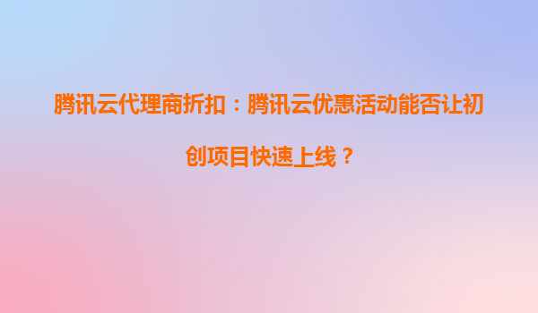 騰訊云代理商折扣:騰訊云優(yōu)惠活動能否讓初創(chuàng)項目快速上線? 在當今數字化時代,初創(chuàng)企業(yè)面臨著巨大的競爭壓力,如何快速、高效地將項目上線成為關鍵。騰訊云作為國內領先的云計算服務提供商,憑借其...