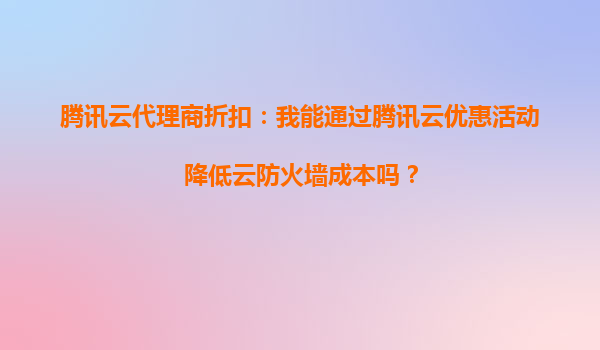 2025-10-06騰訊云代理商折扣:我能通過騰訊云優(yōu)惠活動降低云防火墻成本嗎? 一、騰訊云代理商折扣的核心優(yōu)勢 騰訊云作為國內領先的云服務提供商,其代理商體系能為用戶帶來顯著的采購成本優(yōu)勢。通過官方認證代理商渠...
