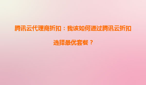 2025-10-06騰訊云代理商折扣:我能否通過騰訊云活動提高服務可靠性? 一、騰訊云代理商折扣的核心價值 騰訊云代理商折扣是騰訊云生態(tài)體系中的重要一環(huán),旨在通過合作伙伴渠道為用戶提供更具性價比的云服務。...