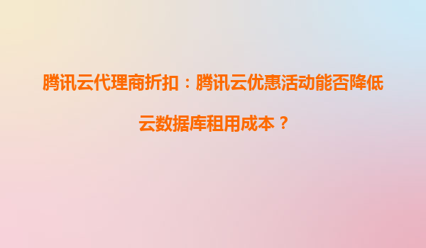 4008-020-360 騰訊云代理商折扣:如何通過(guò)優(yōu)惠活動(dòng)降低云數(shù)據(jù)庫(kù)租用成本? 騰訊云代理商折扣的核心優(yōu)勢(shì) 騰訊云作為國(guó)內(nèi)領(lǐng)先的云服務(wù)提供商,通過(guò)與代理商合作推出專屬折扣政策,大幅降低了企業(yè)上云的門檻。代理商通常能...