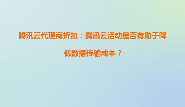 2025-10-04騰訊云代理商折扣:騰訊云活動(dòng)是否有助于降低數(shù)據(jù)傳輸成本? 引言 在數(shù)字化轉(zhuǎn)型的浪潮中,云計(jì)算已成為企業(yè)IT基礎(chǔ)設(shè)施的核心組成部分。數(shù)據(jù)傳輸成本作為作為云服務(wù)使用中的一項(xiàng)重要支出...