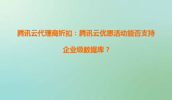 2025-10-04騰訊云代理商折扣:騰訊云優(yōu)惠活動能否支持企業(yè)級數(shù)據(jù)庫? 引言 隨著數(shù)字化轉型的加速,企業(yè)級數(shù)據(jù)庫的需求日益增長。騰訊云作為國內領先的云計算服務提供商,...